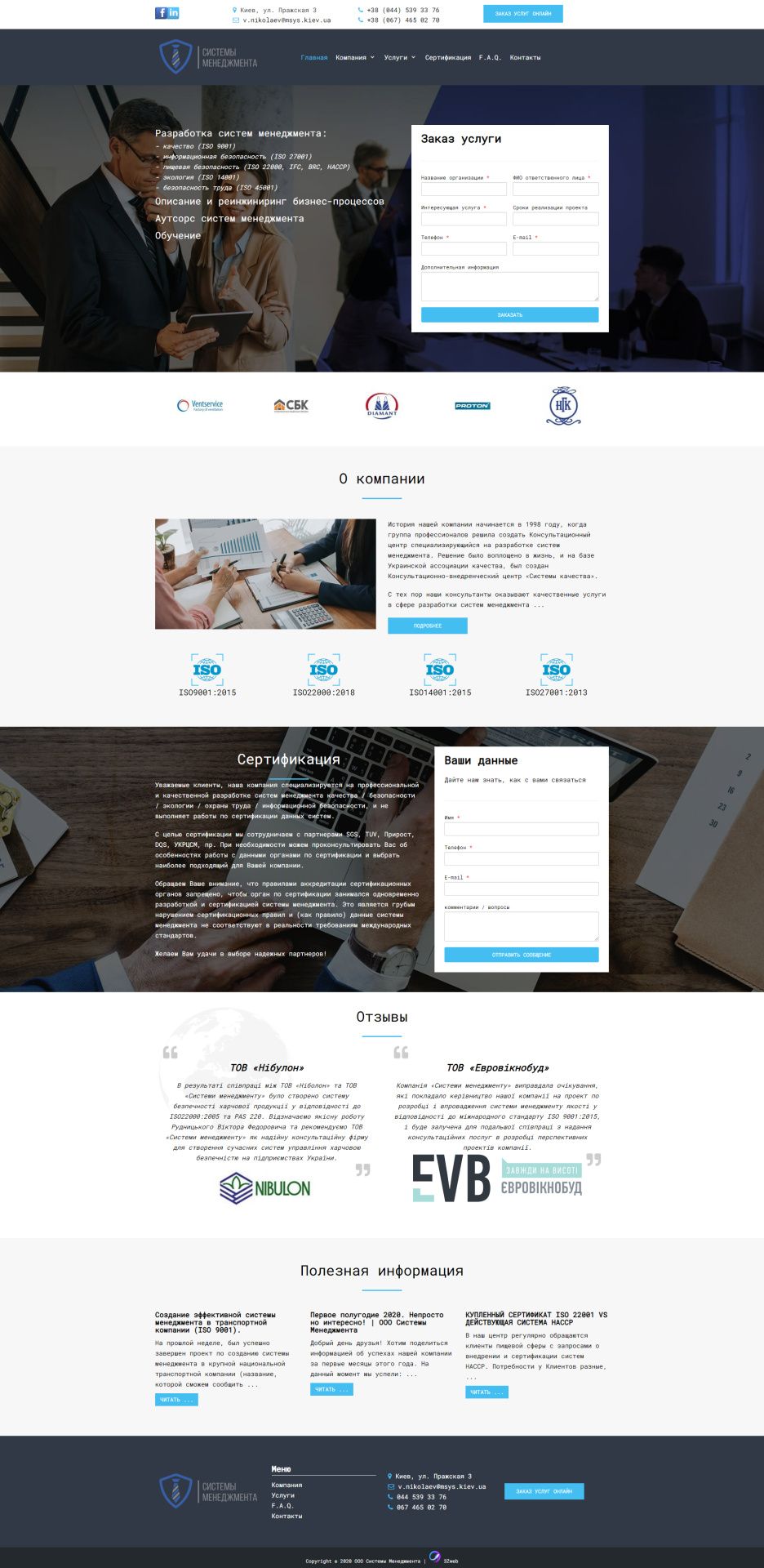 Тип сайта: Визитка.