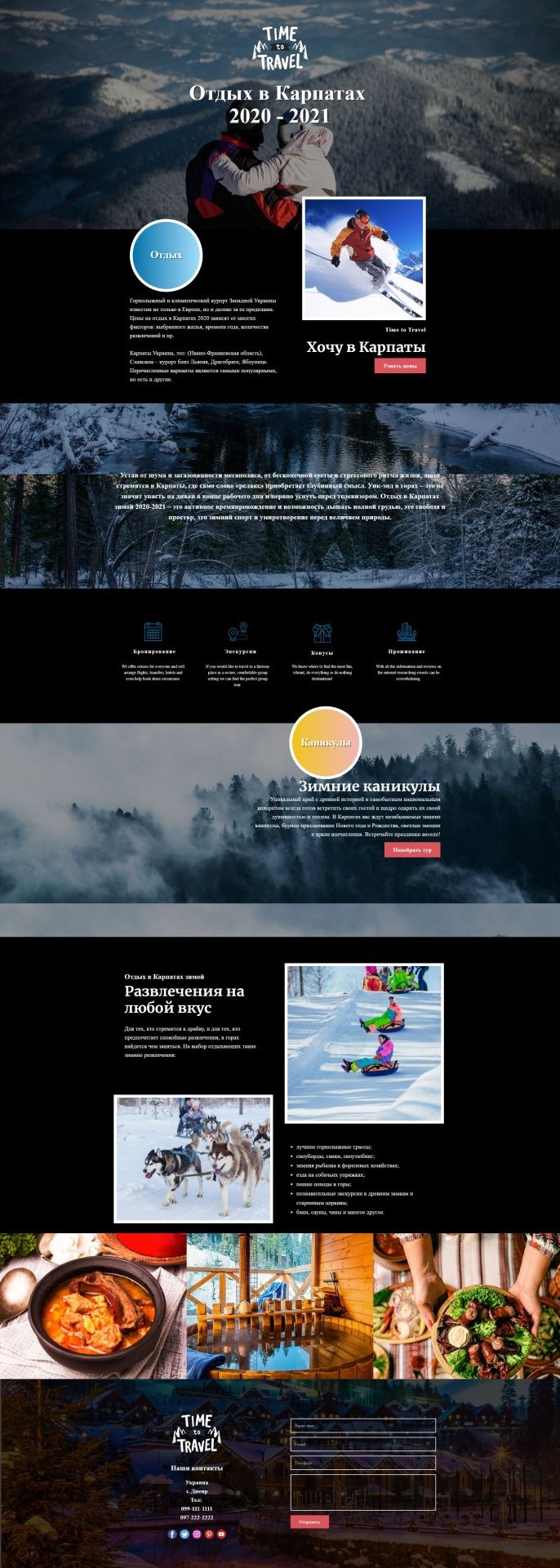 Макет сайта для туристического агентства. Версия: ПК Тип: landing page.